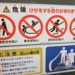 おもしろ貼り紙 2020年5月17日 【おもしろ貼り紙】変なキャラが実演するエスカレーターのソーシャルディスタンス 【おもしろ貼り紙・おもしろ幕 No.0040】変なキャラが実演するエスカレーターのソーシャルディスタンス
